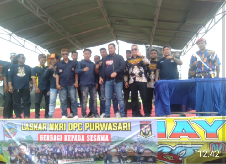 NURJATINEWS.COMKARAWANG Ketua Umum DPP LSM Laskar NKRI, H. ME Suparno,SE. melantik dan mengukuhkan kepengurusan DPC Laskar NKRI Kecamatan Purwasari di Hadiri langsung oleh pengurus DPP ,jajaran Timsus,dan beberapa ketua PAC serta jajaran PAC purwasari , yang di selenggarakan di lapangan perum Harmoni Desa Cengkong Kecamatan Purwasari kabupaten karawang (30/12/2024).