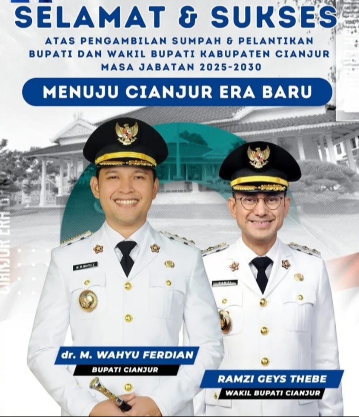 Semoga di bawah kepemimpinan bapak dr. Wahyu Ferdian. dan Bapak Ramzi Geys Thebe Kabupaten Cianjur semakin maju, sejahtera, serta mampu membawa perubahan positif bagi seluruh masyarakat. Kami yakin dengan pengalaman dan dedikasi yang dimiliki, Cianjur akan terus berkembang dalam berbagai sektor.
