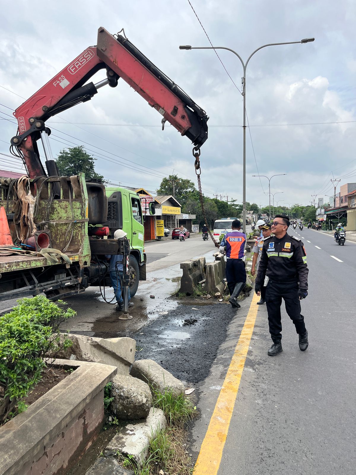 Kapolres Karawang Polda Jabar, AKBP Edwar Zulkarnain, SIK., SH., MH kepada Kasat Lantas Polres Karawang, AKP Abdurrohman Hidayat, S.Tr.K., SIK telah mempersiapkan penutupan U turn yang biasa digunakan kendaraan untuk berputar arah.