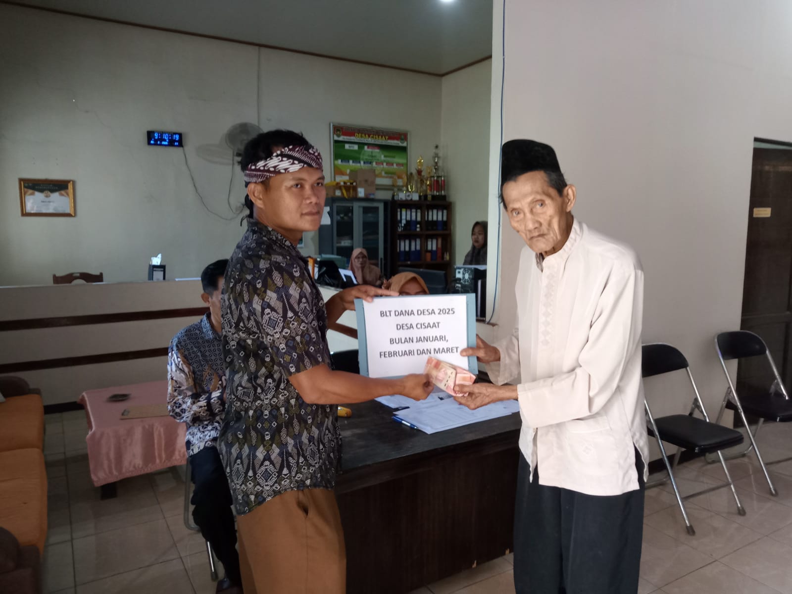 Desa Cisaat telah menetapkan 40 KPM yang menerima BLT DD sebesar Rp 300.000,- setiap bulan dan dibagikan kepada warga pada bulan maret. Bantuan tersebut dibagikan di Aula Kantor Desa Cisaat pada hari Kamis (19/03/2025)