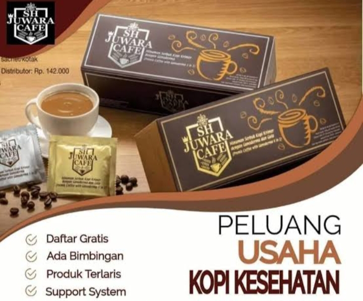 Isi : 20 Sachet/Kotak,Harga Distributor: Rp 160.000 dengan komponen-komponen utama: biji kopi kualitas premium, krimer nabati dan Yung Kien Ganoderma.