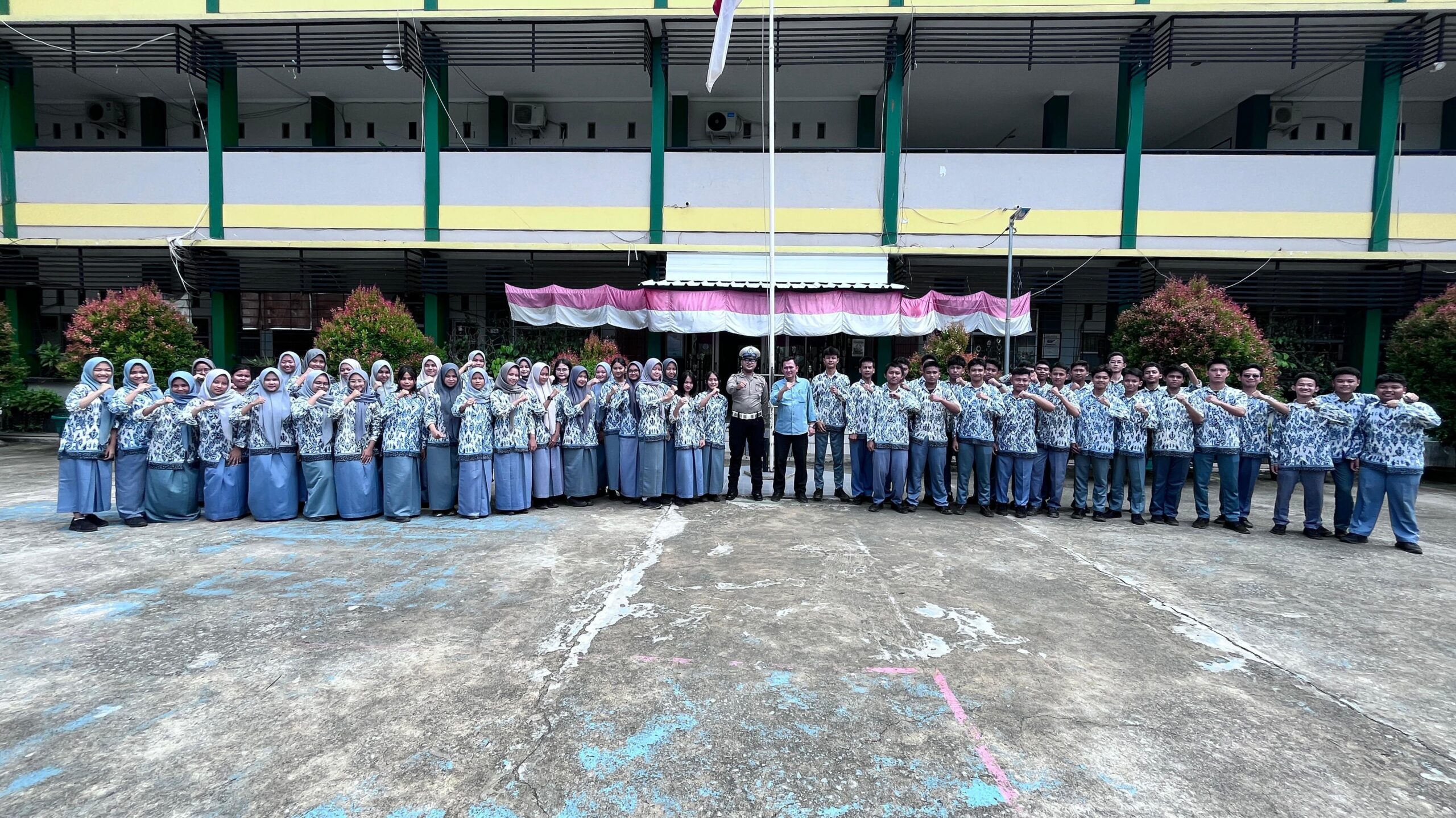 NURJATINEWS.COM – KARAWANG Polres Karawang – Personel Kamsel Satlantas Polres Karawang, Briptu Rizal Budi Ramdani melaksanakan kegiatan patroli keamanan sekolah (PKS) serta edukasi tertib lalu lintas kepada pelajar SMAN 5 Karawang, Rabu (21/5/2025).