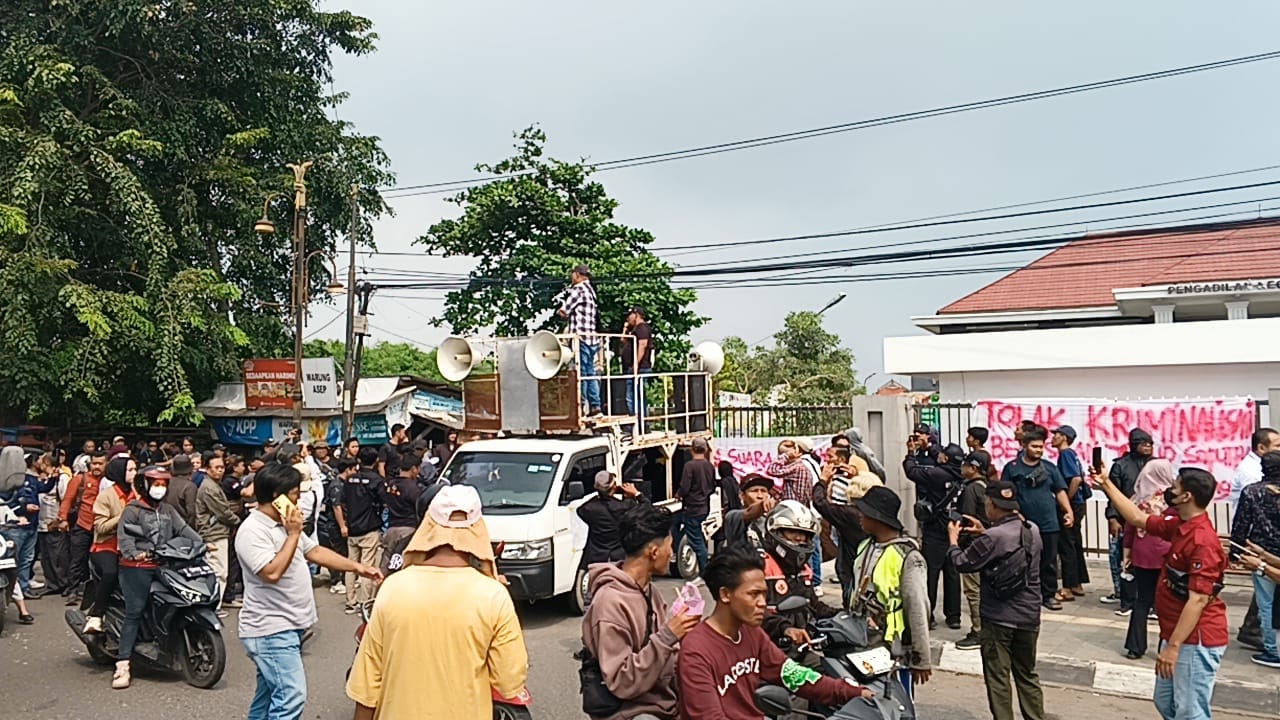 Aksi Demo damai Aktivis Media di Depan Pengadilan Negeri Karawang.