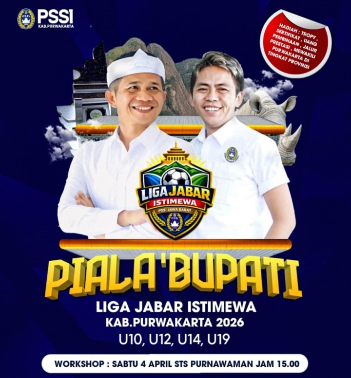 NURJATINEWS.COMPURWAKARTA  Pemerintah Kabupaten Purwakarta bersiap menggelar turnamen sepak bola kelompok umur bergengsi, Piala Bupati Purwakarta 2026. Ajang pencarian bakat ini dijadwalkan resmi dibuka pada Sabtu, 18 April 2026, di Stadion Purnawarman, Purwakarta.
